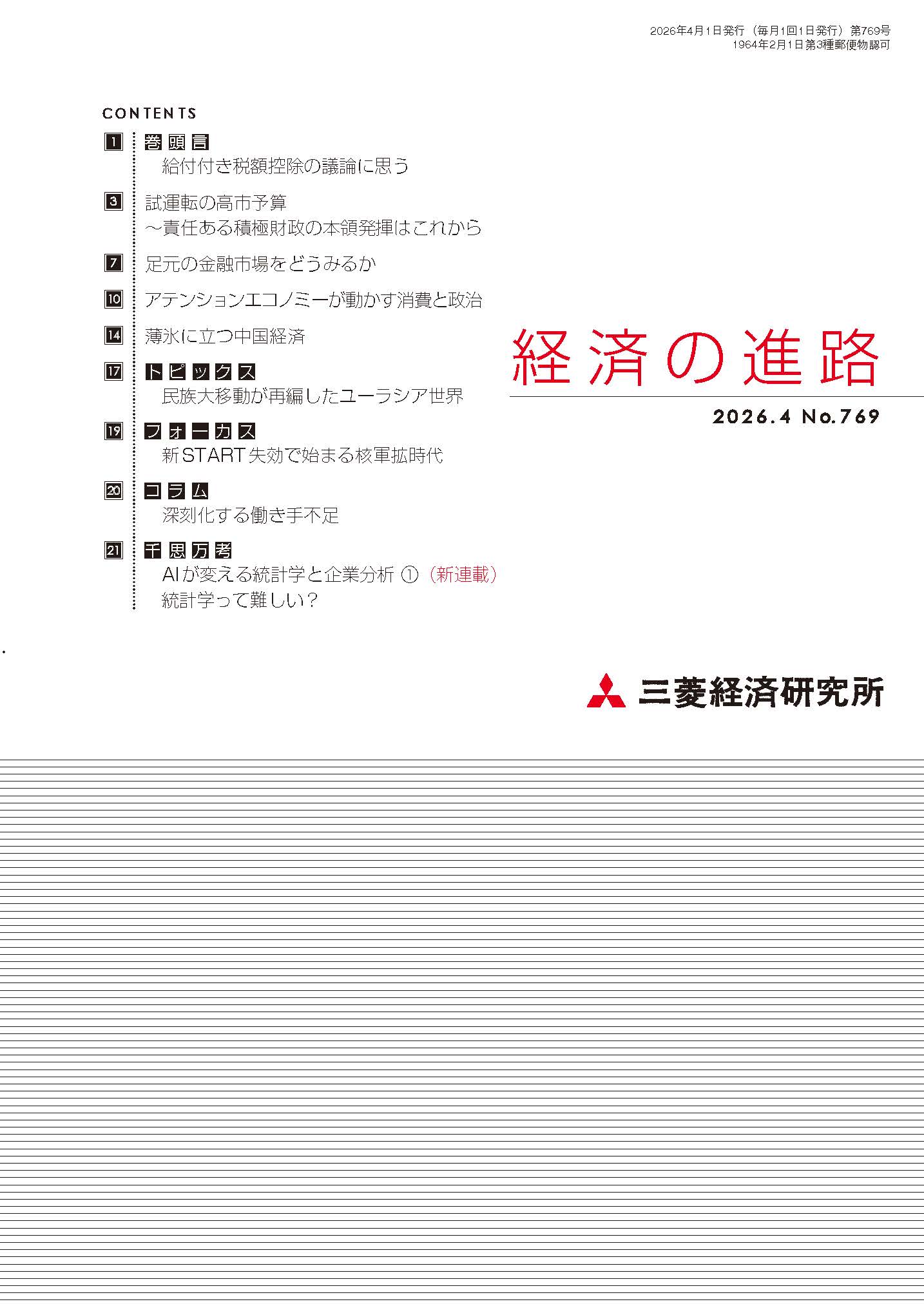 1928(昭和3)年「本邦財界情勢」として創刊、1963(昭和38)年に「経済の進路」へ改題、2026(令和8)年3月末現在通算1,159号になります。